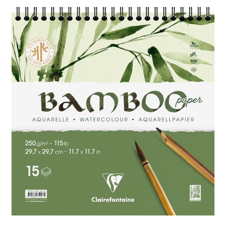*Альбом(спіраль) д/акварелі 250г др.зерно бамбук 100% Bamboo Clairefontaine 15арк.29,7х29,7см