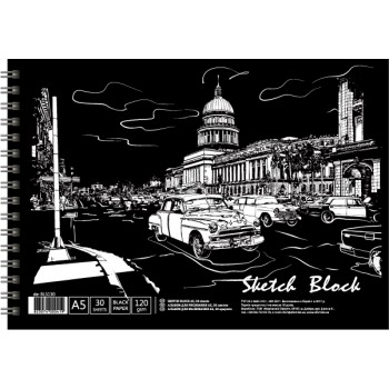 Альбом(спіраль) д/начерків 120г (спіраль) 30арк.А5 ЧОРНИЙ