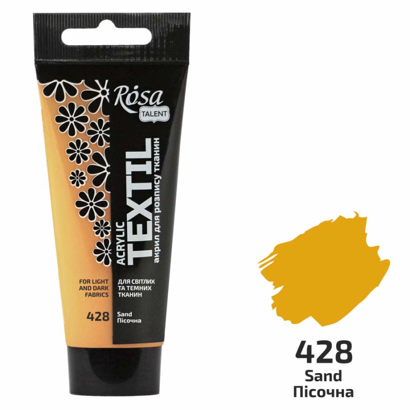 Будьте першим, хто залишив відгук на “Фарба акрил.по світл.та темн. тканинам не розтікається ROSA TALENT 60мл 28 ПІСОЧНА”