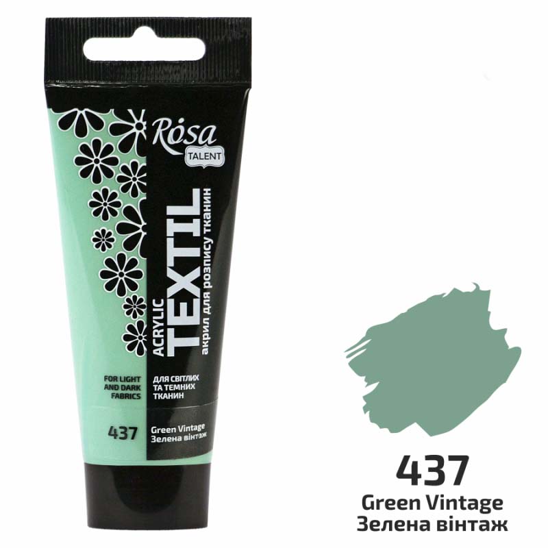 Фарба акрил.по світл.та темн. тканинам не розтікається ROSA TALENT 60мл 37 ЗЕЛЕНА ВІНТАЖ