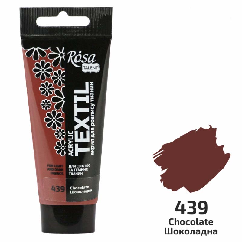 Фарба акрил.по світл.та темн. тканинам не розтікається ROSA TALENT 60мл 39 ШОКОЛАД