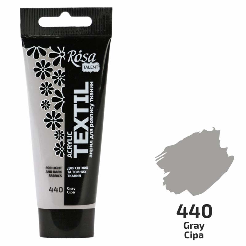 Фарба акрил.по світл.та темн. тканинам не розтікається ROSA TALENT 60мл 40 СІРА