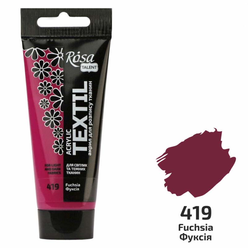 Фарба акрил.по світл.та темн. тканинам не розтікається ROSA TALENT 60мл ФУКСІЯ