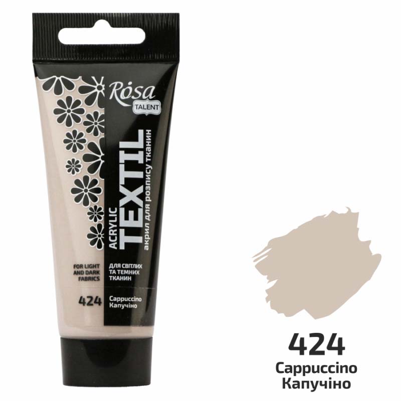 Будьте першим, хто залишив відгук на “Фарба акрил.по світл.та темн. тканинам не розтікається ROSA TALENT 60мл КАПУЧИНО”