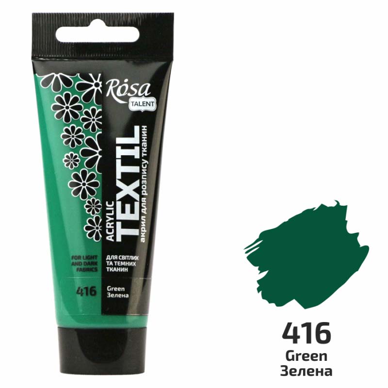 Фарба акрил.по світл.та темн. тканинам не розтікається ROSA TALENT 60мл ЗЕЛЕНА