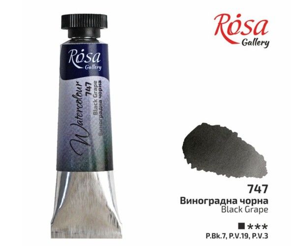 Фарба акварельна Rosa Gallery у тубі 10мл ВИНОГРАДНА ЧОРНА