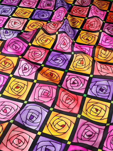 !БЕЗ ЗНИЖОК Хустка шовкова “Эпондж 08” под росписьс черным контурн.рисунком 36г/м2 Ideen 90х90см РОЗОЧКИ