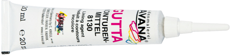 Без цвета и запаха нетоксичный контур. Не содержит спирта. Используется для резервирования красок на тканях тонких и средней плотности. Наносится с помощью аппликатора или кистью.Создаёт чёткий контур. Вязкость можно регулировать добавлением воды. После первой стирки удаляется полностью, ткань остаётся мягкой и не окрашенной. Легко смывается водой после обработки в запарнике. Не вызывает сморщивания ткани. Производитель:С.Kreul (Кройль) Германия