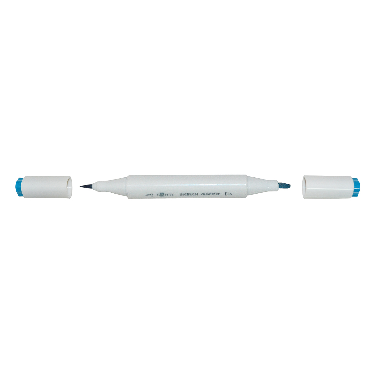 Маркер на водн.осн. двосторонній(пензлик/кругл) Sketch Santi SM-20 БІРЮЗОВИЙ