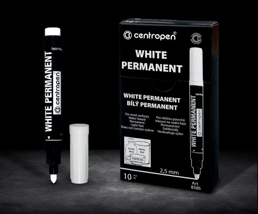 Маркер перм.покривний на водн.осн.кругл.наконечн.Permanent White 8586 Centropen 2,5мм БІЛИЙ