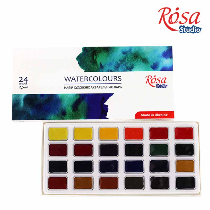 Набір акварельн фарб у кюветах Rosa Studio 24кол у картон.кор.