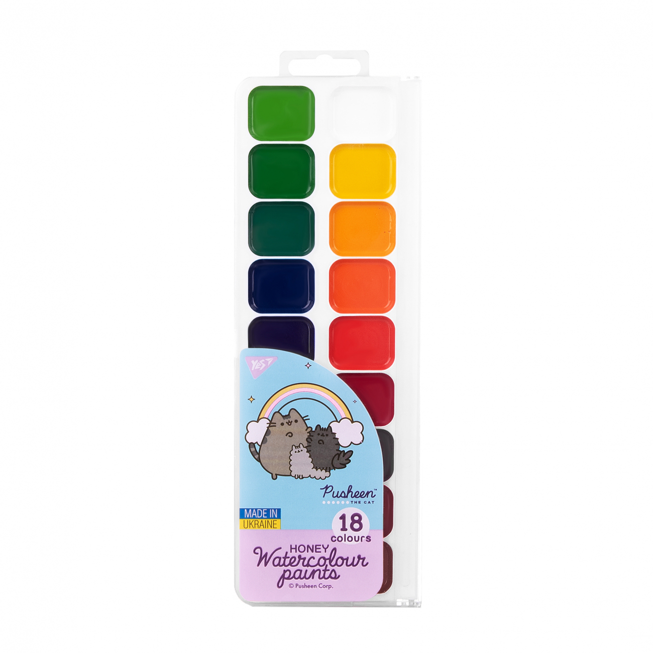 *Набір акварельн медових фарб у кюветах PusheeYes 18кол у пласт упак.