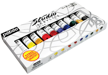 Наборы акриловых красок “Studio” в тубе 20мл. в картонной коробке. Выпускаются в наборах по 10, 20,30 и 40шт.В каждый набор входит кисть. Акриловые краски “Studio” имеют пастозную консистенцию, сохраняют след кисти или мастихина. Используются в чистом виде или разбавляются акриловым медиумом(P-524250) для получения необходимого эффекта. Хорошо ложатся на любую поверхность, после высыхания водостойкие. Акриловые краски “Studio” яркие и светостойкие. Все цвета хорошо смешиваются между собой, а также с акриловыми красками других производителей. Кисти и рабочие инструменты промывать водой. Производитель: Pebeo(Пебео) Франция