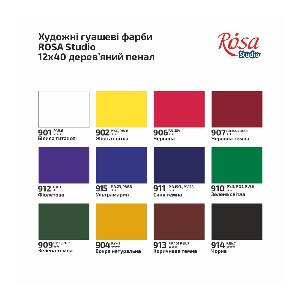 Набір гуаші художньої.Rosa Studio (12х40мл) в дерев.корб.