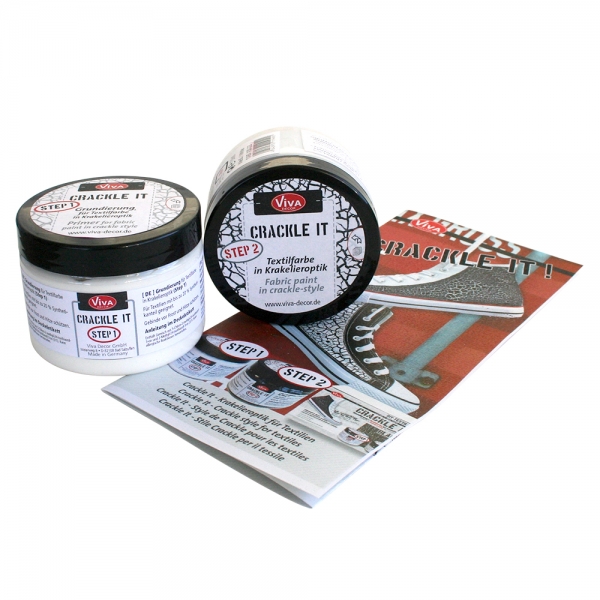 Набор “Кракелюр-эффект” для ткани состоит из двух компонентов. Компонент №1 Грунт и компонент №2 краска для создания кракелюра в пластиковых баночках по 150 мл, упакованных в картонную коробку. Оба средства на водной основе. Используются для создания эффекта кракелюра на текстиле. Подходят для всех видов ткани с содержанием синтетических волокон не более 20%. Перед использованием оба средства тщательно перемешать. На чистую выстиранную (без использования кондиционера) и высушенную ткань нанести тонкий слой грунта. Для сушки можно использовать фен. После высыхания, когда слой станет прозрачным, нанести второй слой грунта. Дождаться полного высыхания и щедрым слоем нанести краску для создания кракелюра. Для получения выраженных трещин тщательно высушить полученную поверхность феном. После полного высыхания закрепить, проглаживая утюгом в режиме «хлопок». Через 72 часа декорированное изделие можно стирать при температуре 30*С, в режиме бережной стирки. Рабочие инструменты промываются водой. Не нагревать! Не замораживать! Производитель: Viva (Вива)Германия