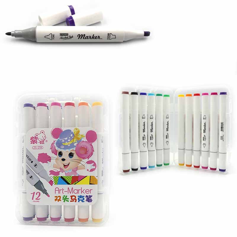 Набір маркерів на спирт.осн. двосторон.(скошен/круглий) тригран.корп.”Mouse” 12кол у пластик.упак.