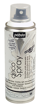 Яркая акриловая краска Decospray в аэрозольной упаковке по 200 и 100мл. Краски Decospray на водной основе, кроме хромированных оттенков. Наносить можно практически на все поверхности: плотную бумагу, картон, пластик, дерево, металл, глину, гипс, керамику, стекло, камень, холст. Нельзя наносить на пенопласт!!! Краски Decospray – слабопахнущие, приспособлены для использования снаружи и внутри помещения. После высыхания становятся несмываемыми, нерастворимыми и стойкими к атмосферным воздействиям (для наружных работ). Цветовая палитра в объеме 200мл 55цветов, в объеме 100мл 21цвет. Среди них есть оттенки, глянцевые, матовые, перламутровые, флюоресцентные, с глиттером, хромированные и со спецэффектом: мел, камень и грифель. Перед использованием встряхните аэрозоль. Наносить на чистую и обезжиренную поверхность с расстояния 20 см от основы непосредственно из распылителя. За распылителем и насадкой необходим отдельный уход. Для этого, после каждого использования, необходимо перевернуть баллончик и нажимать на распылитель до тех пор, пока краска не перестанет выходить. Пятна краски смываются мылом и водой в течение первых 20 – 25 минут после нанесения. После полного высыхания (12 часов), краски Decospray становятся несмываемыми и нестираемыми. Производитель: Pebeo(Пебео) Франция