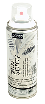 Яркая акриловая краска Decospray в аэрозольной упаковке по 200 и 100мл. Краски Decospray на водной основе, кроме хромированных оттенков. Наносить можно практически на все поверхности: плотную бумагу, картон, пластик, дерево, металл, глину, гипс, керамику, стекло, камень, холст. Нельзя наносить на пенопласт!!! Краски Decospray – слабопахнущие, приспособлены для использования снаружи и внутри помещения. После высыхания становятся несмываемыми, нерастворимыми и стойкими к атмосферным воздействиям (для наружных работ). Цветовая палитра в объеме 200мл 55цветов, в объеме 100мл 21цвет. Среди них есть оттенки, глянцевые, матовые, перламутровые, флюоресцентные, с глиттером, хромированные и со спецэффектом: мел, камень и грифель. Перед использованием встряхните аэрозоль. Наносить на чистую и обезжиренную поверхность с расстояния 20 см от основы непосредственно из распылителя. За распылителем и насадкой необходим отдельный уход. Для этого, после каждого использования, необходимо перевернуть баллончик и нажимать на распылитель до тех пор, пока краска не перестанет выходить. Пятна краски смываются мылом и водой в течение первых 20 – 25 минут после нанесения. После полного высыхания (12 часов), краски Decospray становятся несмываемыми и нестираемыми. Производитель: Pebeo(Пебео) Франция