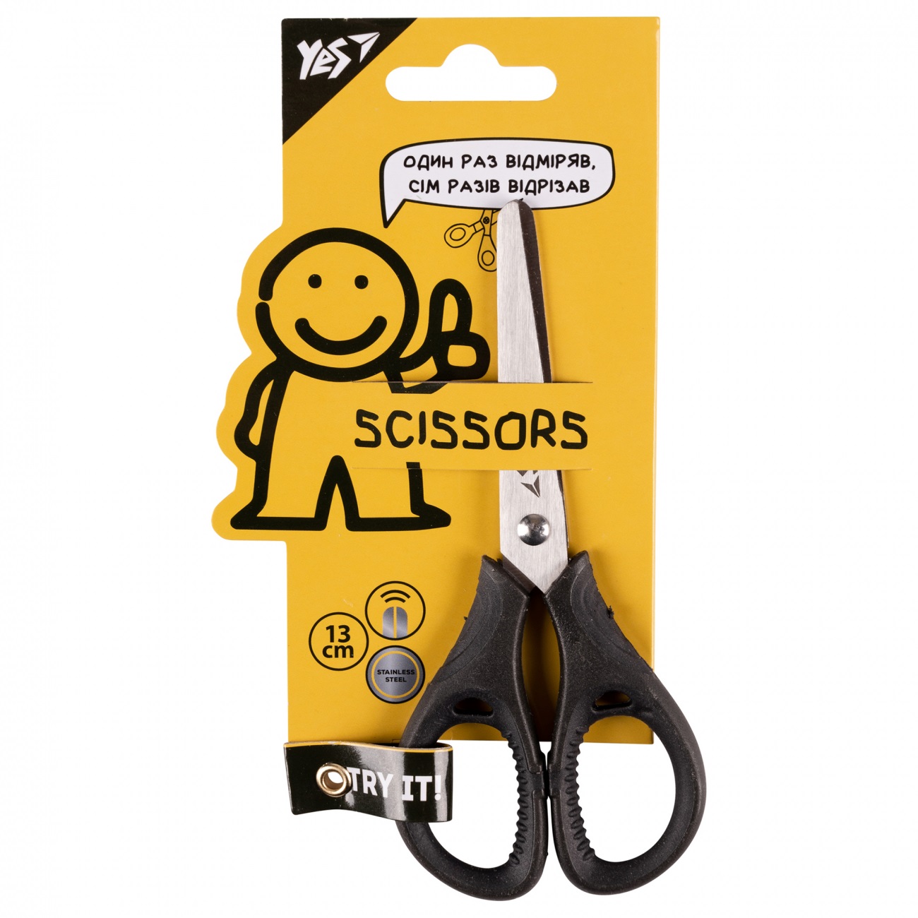 Ножиці мктал.з гумов.вставкамиYES “Не ускладнюй” довж.13см