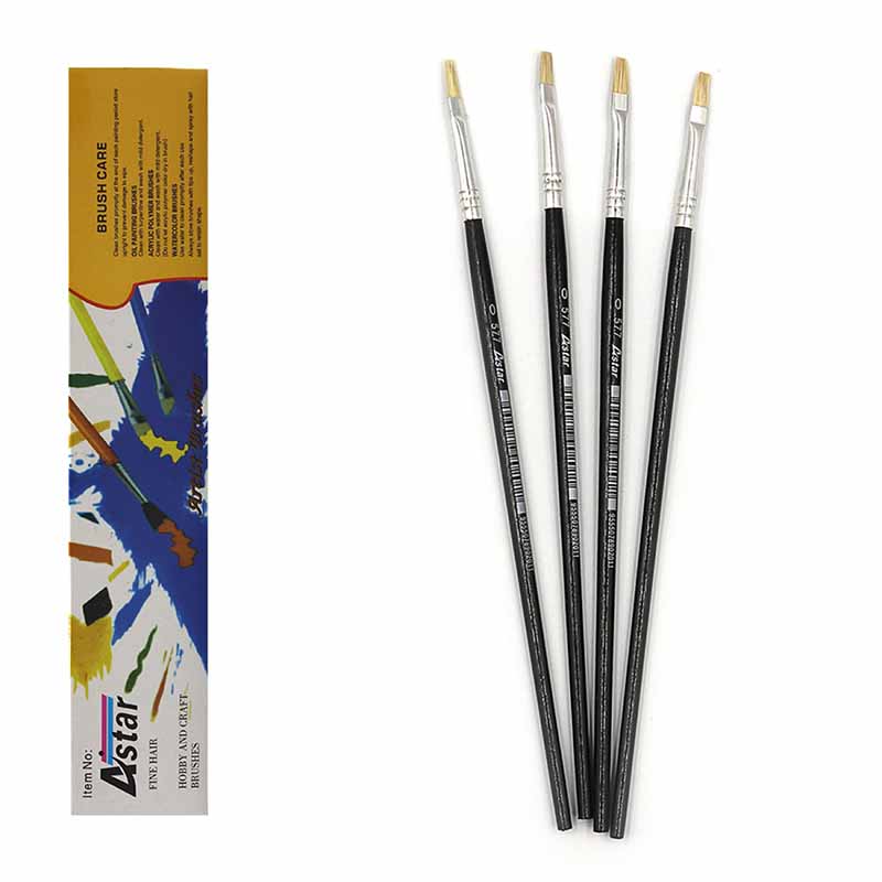 Пензель з волосся щетини ПЛОСКИЙ/ручка удл.чорна “Astar” JO №0