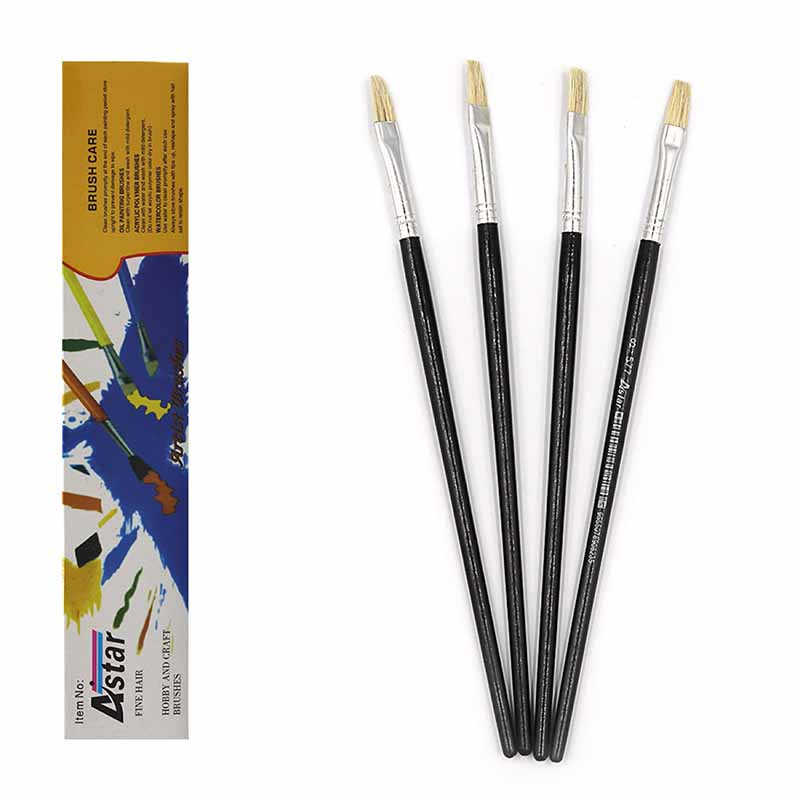 Пензель з волосся щетини ПЛОСКИЙ/ручка удл.чорна “Astar” JO №8