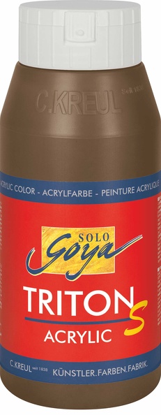 Краска акриловая глянцевая “Solo Goya” Triton в пластиковой банке 750мл. На водной основе. Предназначена для настенной и станковой живописи, а также для любых видов декоративного творчества. Удобна в применении. Используется как для внутренних, так и для наружных работ, а также для профессионального применения художниками-декораторами театров и художниками-оформителями витрин. Цветовая палитра насчитывает 18 цветов. Все цвета хорошо смешиваются между собой а также с акриловыми красками других производителей. Тщательно подобранные связующие вещества обеспечивают после высыхания краски образование эластичной пленки. Поверхность получается водостойкая, глянцевая. Кисти и рабочие инструменты промывать водой. Производитель : Kreul (Кройль) Германия