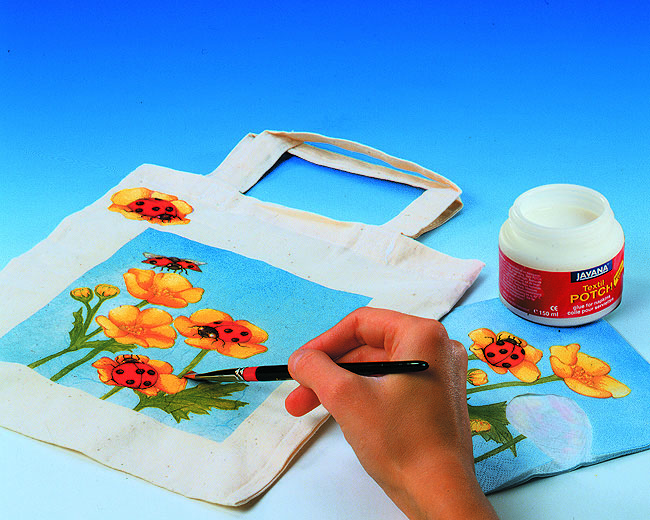 Клей на водной основе, прозрачный, жидкий. Используется для наклеивания бумажных 3-слойных салфеток для декупажа на все текстильные материалы, которые можно закреплять в режиме «хлопок» (на очень эластичном трикотаже салфетка может разрываться). Ткань выстирать и высушить. Рисунок, распечатанный на салфетке, вырезать или аккуратно оторвать. Снять верхний слой. Перед применением клей взболтать. На нужный участок ткани обильно нанести клей, а затем разместить рисунок. Чтобы салфетка полностью пропиталась, сразу покрыть сверху 2-м слоем клея. Наносить клей поверх рисунка от середины к краям мотива. Использовать мягкую плоскую кисть. Сушить в течении суток, затем зафиксировать, проглаживая ткань с изнанки утюгом в течение 5 минут в режиме «хлопок». Стирать вручную (при 40*С), используя щадящие моющие средства. Кисти после работы промываются водой. Не нагревать! Не замораживать! Производитель: С. Kreul (Кройль) Германия