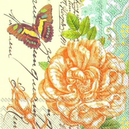 R РОЗБИРАТИ 27.6 Серветка25х25см (20шт) “Роза и бабочка”