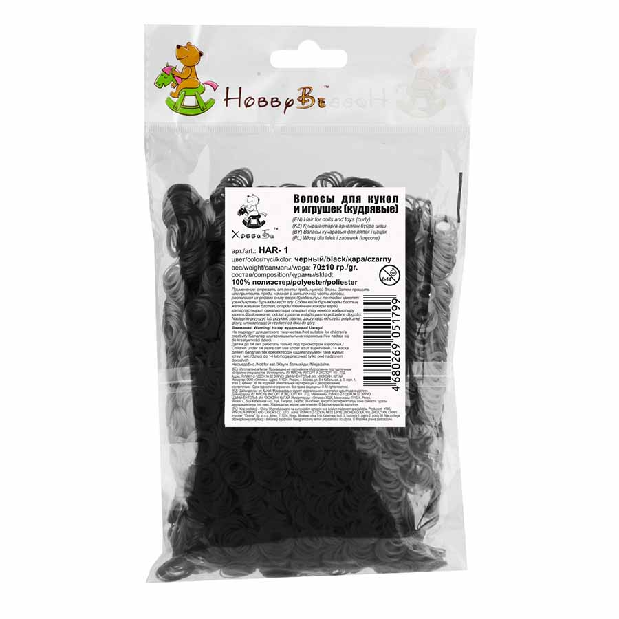 Волосы для кукол и игрушек кудрявые 70г ЧЕРНЫЕ