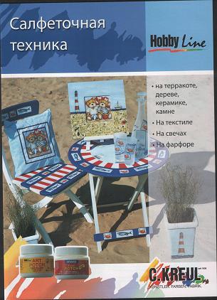 !ЗНЯТІ З ВИР-ВА,Брошюра HOBBY LINE”Декупаж.Салфеточная техника” C.Kreul 12стр.(рус.яз.)
