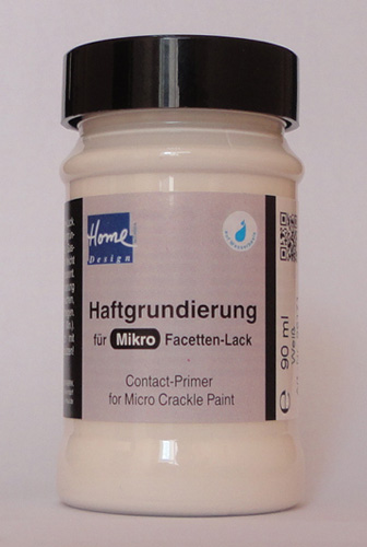 Лак-грунт для фацета (саморастрескивающегося медиума) МИКРО Home Design на водной основе в пластиковых баночках по 90мл. Используется для улучшения сцепления фацета Home Design МИКРО с гладкими непористыми поверхностями, такими как стекло, фарфор, металл и т. д. При применении лака-грунта трещины получаются более равномерными. Выпускается лак-грунт БЕЛЫЙ и ПРОЗРАЧНЫЙ. При работе на тёмной поверхности рекомендуется использовать грунт белого цвета. Прозрачный же грунт рекомендуется при работе на прозрачной или светлой поверхности. Применение: Перед применением лак-грунт взболтать. Равномерно нанесите лак-грунт на чистую, обезжиренную поверхность, и оставьте до полного высыхания (около 30 минут). После высыхания наносите фацет МИКРО. Рабочие инструменты промываются водой. Не нагревать! Не замораживать! Производитель: C.Kreul (Кройль) Германия